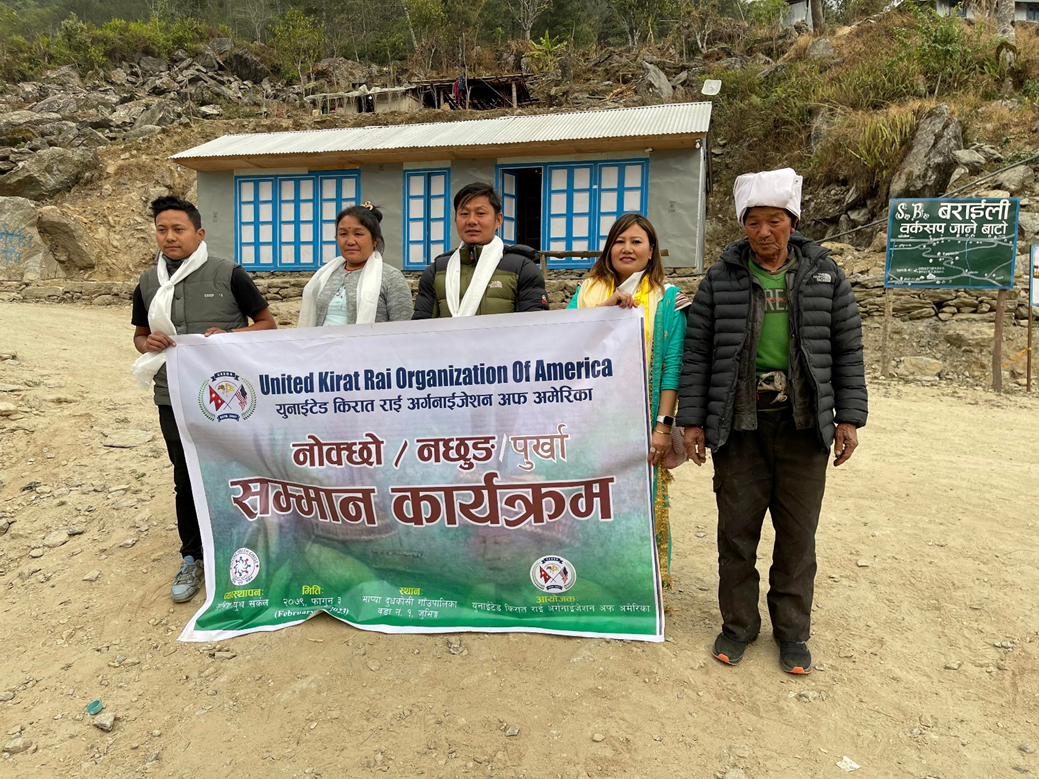 On February 14th, the UKROA NY chapter organized a felicitation program to honor Nokchhos and Kirati elders. A total of 15 Nokchhos and 12 Purkhas (elders) were recognized with clothings, food, and a letter of appreciation. The event was presided over by Mamata Rai, the president of the UKROA NY chapter, with Sajjan Rai, chairman of Mapya Dudhkosi Municipality, as the chief guest. Several social workers, cultural activists, and educators delivered speeches highlighting the significance of Nokchhos and Purkhas.
